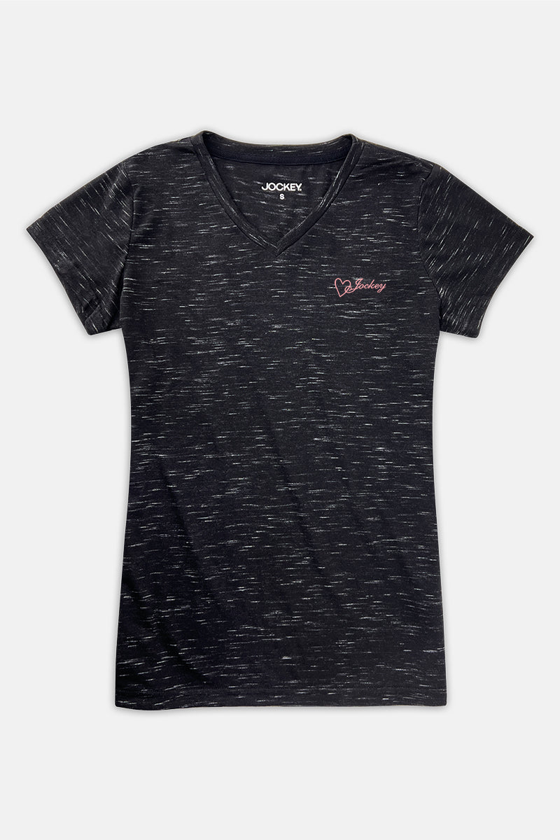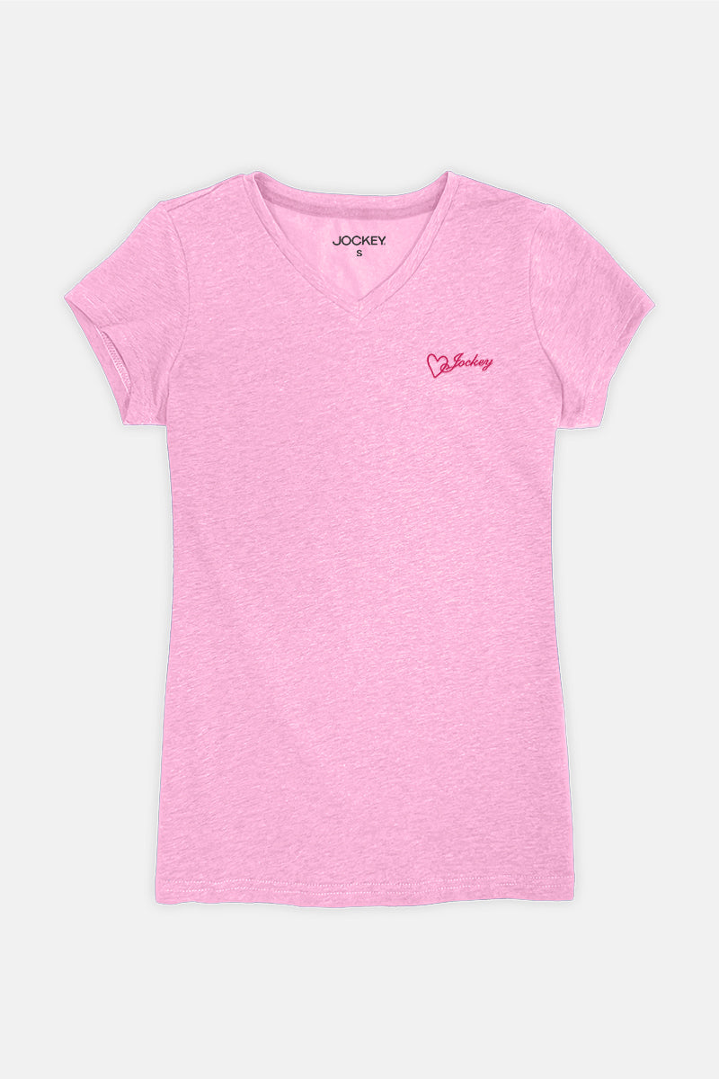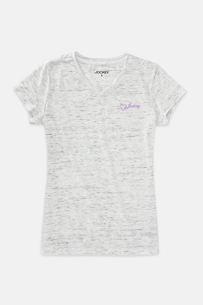 Jockey® Ladies' Mixed Cotton SIngle Jersey V-neck Basic Tee with Embroidery | JLT358913
